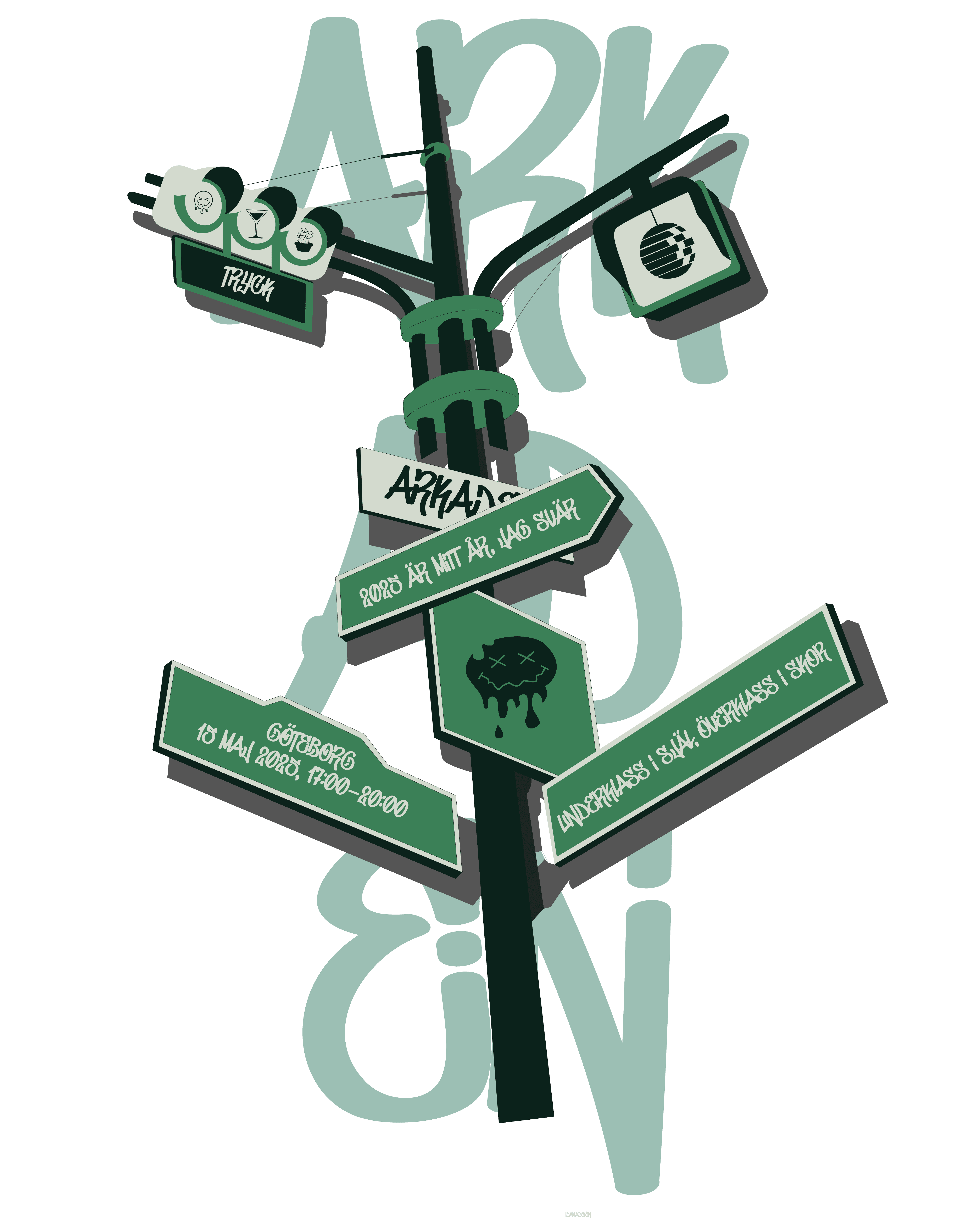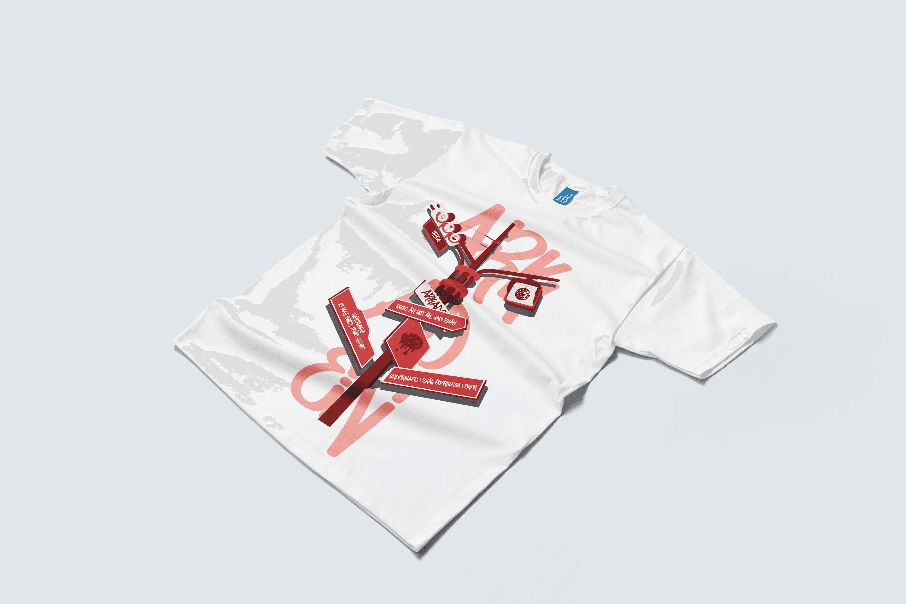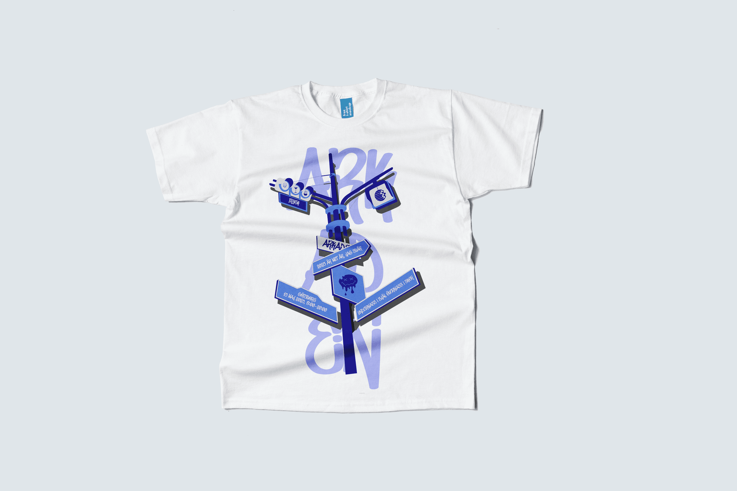 I created a bold yet playful graphic with street sign motifs, clean type, and subtle graffiti elements. The design balances impact and wearability, reflecting the event’s themes of identity and self–expression.
